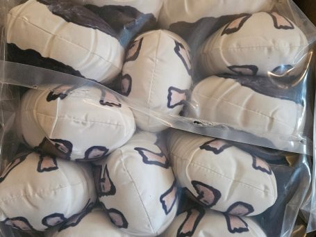 Der Print erfolgte auf nachhaltigem, recycleten Stoff. Onitas produzieren hauptsächlich Printfiguren chilenischer Motive wie den Selk'nam oder historischer Persönlichkeiten.