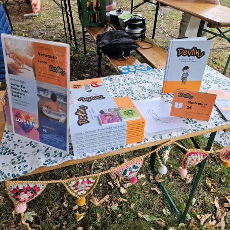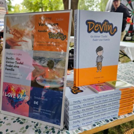 Strahlend blauer Himmel, Sonnenschein und der Duft frisch gemähten Grases boten traumhafte Voraussetzungen für zwei Kurzlesungen vor interessiertem Publikum beim Stadtteilfest SaVahri. Die großen und kleinen Zuhörer:innen folgten gebannt den Erlebnissen Devlins und machten begeistert beim teuflischen Rätsel mit, um den Hauptpreis (ein Buch) zu gewinnen.